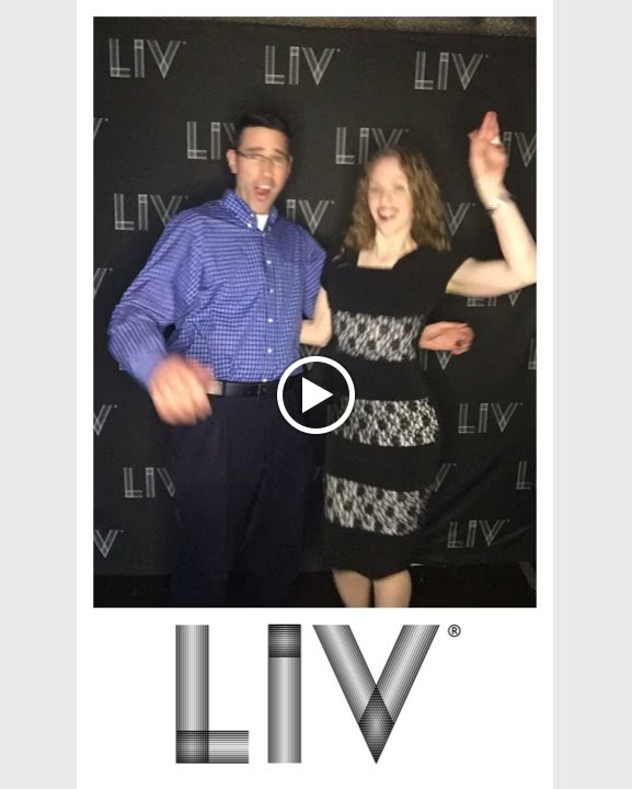 When we went inside LIV, they had another photo booth that looked really cool. You can't tell it from this picture, but the light was a really cool greenish color. Again, I felt so cosmopolitan! Ha ha. They took this photo of us first, and then the gif below. I copyrighted this photo because they took it with Greg's very own phone! :)